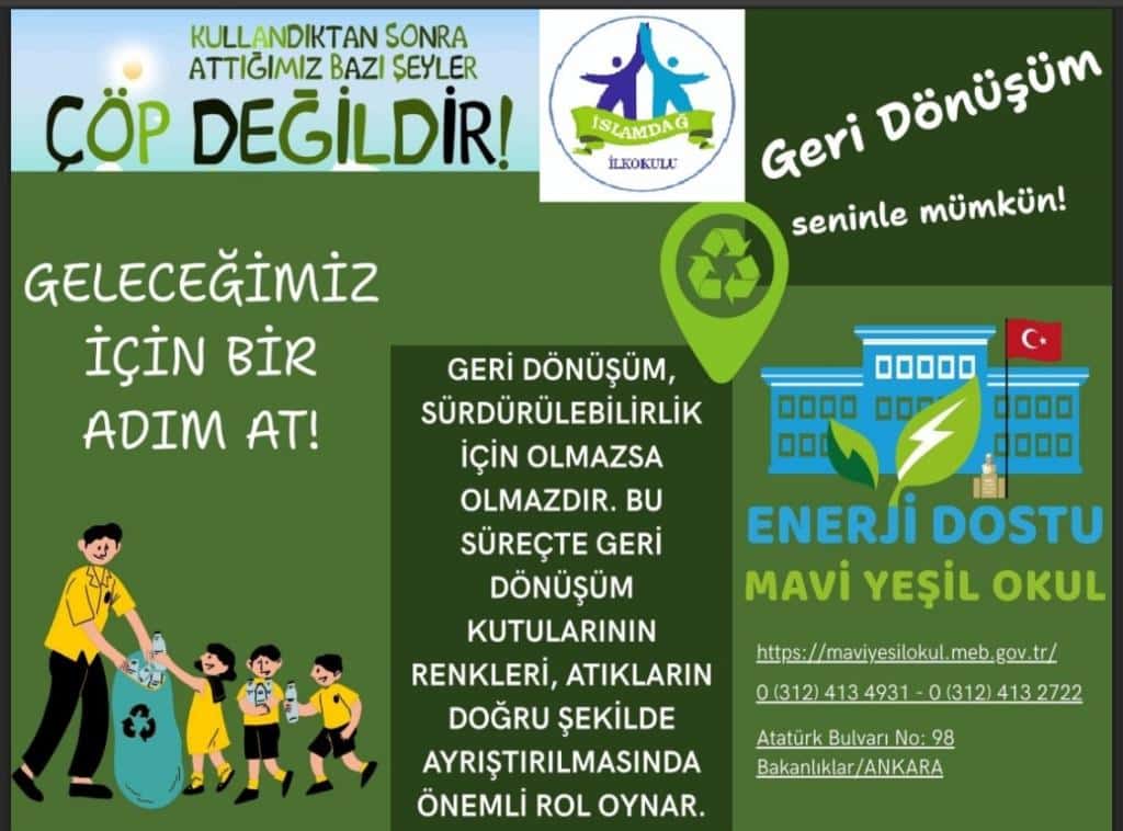 Okulumuz Enerji Dostu Mavi Yeşil Okul Projesine katılım sağladı. Proje kapsamında dergi broşür ve afişler yapıldı.